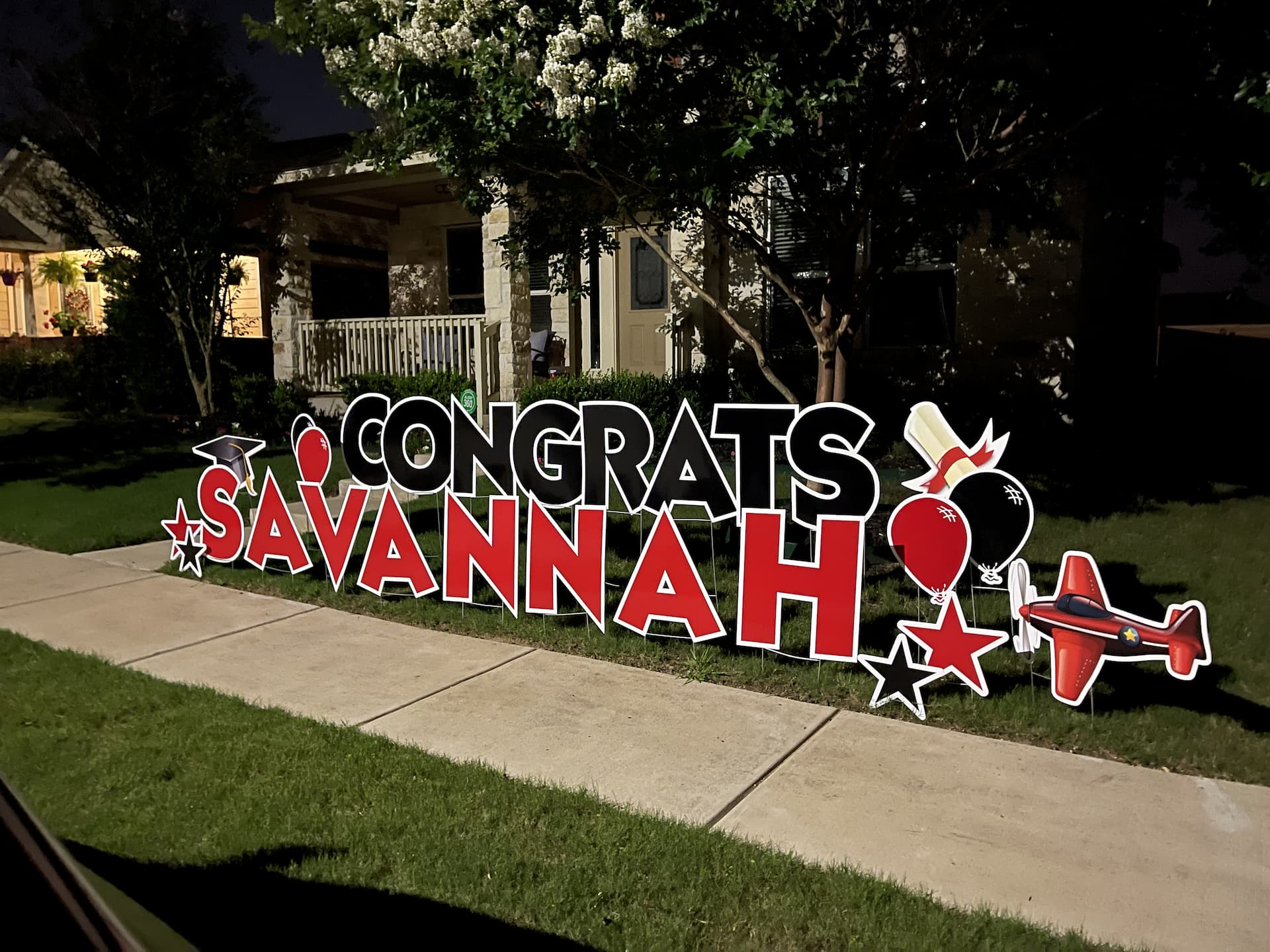 Graduation displays are typically installed for approximately 24 hours unless additional rental days are selected. If you would like to extend the celebration, extra days may be added during booking based on availability.